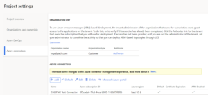 - You can go to LCS and then on Project Settings column select Azure Connector.