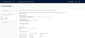 - Select Azure DevOps, and then select Setup Azure DevOps. This configuration is required by many LCS tools. If you’ve already configured LCS to connect to your Azure DevOps project, you can either skip this procedure or select Change to change the existing configuration.
