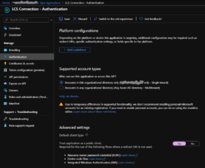 - Under “Supported account Types” please select “Accounts in this organizational directory only (“Your company” only – Single tenant)