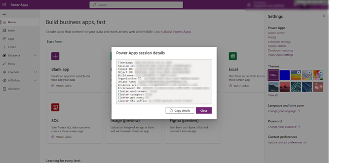 The Redirect URI that was mentioned in Steps to Create an app while Tenantid can be found after logging into PowerApps portal then Settings > Session Details.