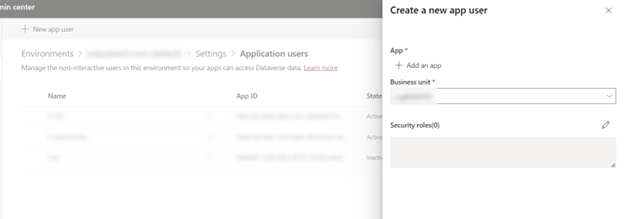 Then open app users list and add a new app user which requires Business Unit (your organization) and define System Admin role for the app and add your registered client application from Add an app.